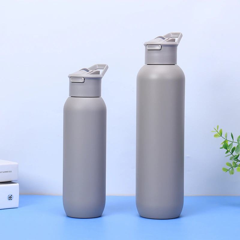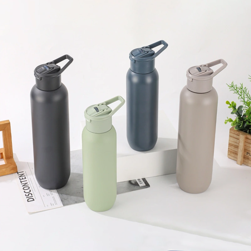 Straw lid vacuum bottle built for active use and branded sports programs